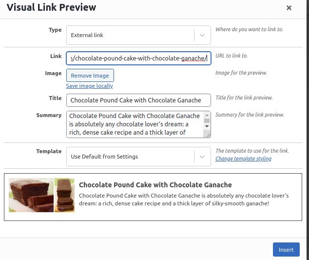 Paste the link we are sharing into the Link text box. It will begin to do its magic, accessing the website and downloading an image file, title and summary excerpt.